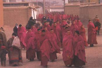 The Labrang Monastery claims to have 108 monasteries under its jurisdiction. As a matter of fact, there should be more. The monastery historically maintained close ties with Tibetan Buddhist monasteries in the Tibetan areas in Gansu, Qinghai and Sichuan. Even today, it has close ties with monasteries in Inner Mongolia, Tibet and the Wutaishan Mountain in Shanxi Province. Blessed with numerous eminent monks, it attracts and endless flow of monks from various parts of China who travel there for study.